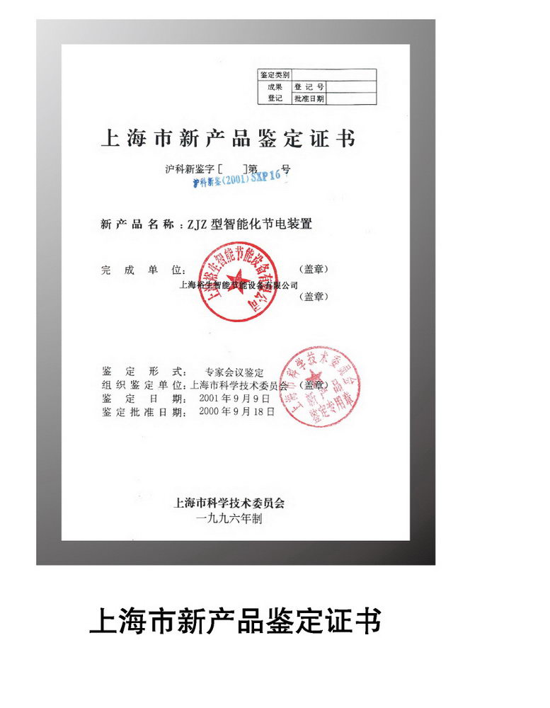 上海市新產(chǎn)品鑒定證書(shū)