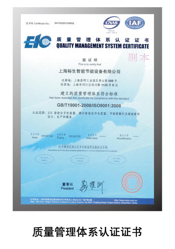 質(zhì)量管理體系認(rèn)證證書(shū)